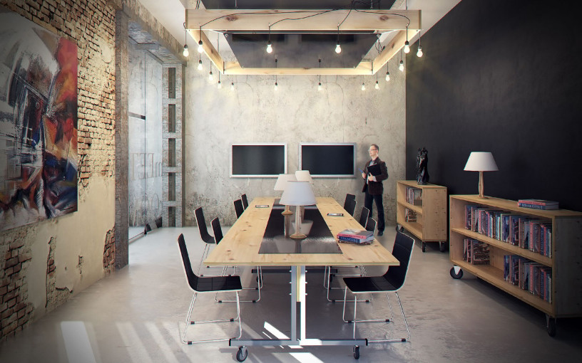 Стиль Лофт - це ще один з «економічно вигідних» стилів. Він дуже актуальний для офісних приміщень, що розташовуються на останніх поверхах або горищах. З ремонтом можна зовсім не морочитися, адже стилю властиві цегляні кладки, бетонні стіни, труби, які можна не приховувати, навіть відсутність штукатурки, шпалер та текстильних покриттів для підлоги нікого не здивує.