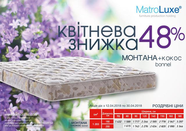 АКЦІЯ -48% НА ОРТОПЕДИЧНІ МАТРАЦИ ВІД МАТРОЛЮКС