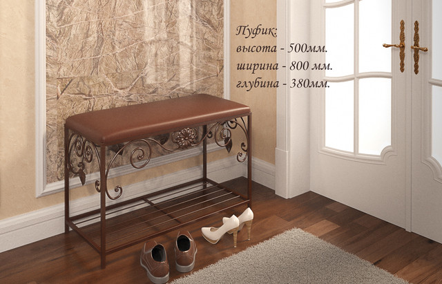 Пуф банкетка металева з полицею для взуття в передпокій, коридор Річмонд 80 см Тенеро