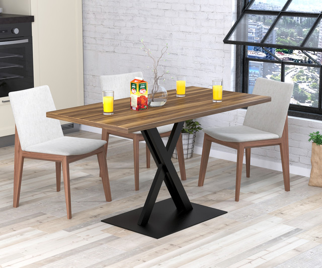 Обідній стіл Експозишн від компанії Loft Design — витончена модель у стилі Лофт, для вашої кухні або кафе. Унікальна Х-подібна конструкція опори з металу, надає столу солідного та сучасного вигляду. Завдяки своєму сучасному дизайну та якісному виготовленню він стане надійним і привабливим доповненням для вашого інтер'єру на довгі роки.
