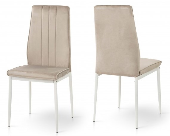 Бежевий стілець на кухню на білих ніжках велюровий Річ Пісочний з високою спинкою і м'яким сидінням Мікс Мебель