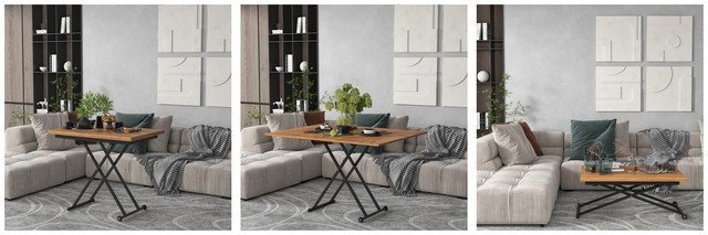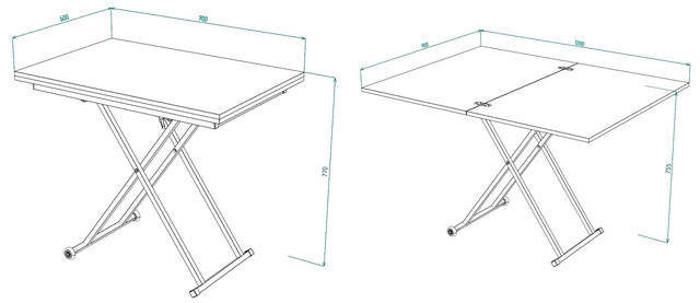 Після трансформації стільниця подвоює свою площу, перетворюючи компактний журнальний стіл на повноцінний обідній або робочий. Розсувний механізм з амортизатором забезпечує плавну й безпечну трансформацію, впоратися з якою зможе навіть дитина.
