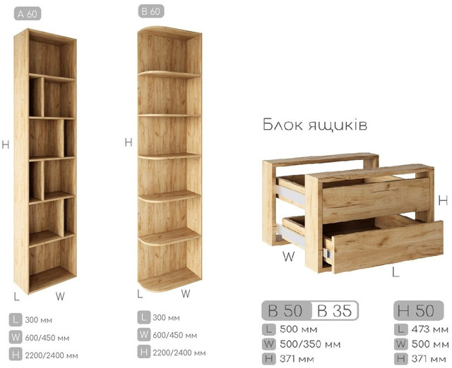 За бажання за додаткову плату можна додати блок висувних ящиків або змінити розмір секції відповідно до ваших потреб.