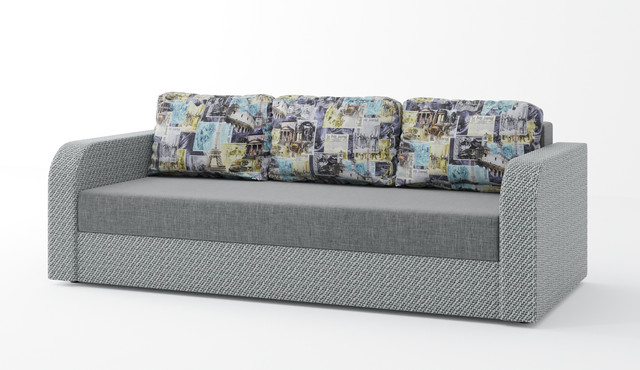 Габарити: 2300х1050х750 мм Спальне місце: 2000х1500 мм Висота посадкового місця: 440 мм У комплекті подушки: 3 шт (660х420х240 мм) Каркас: Натуральне дерево + ДСП |